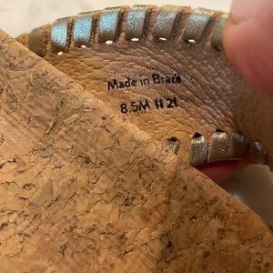Jack Rogers Thelma Comfort Flip Flop in gold. Size 8.5. Great arch support and very comfortable. Gently preowned, scuff at right toe. Easy-going flip flops enhanced with whipstitching detail. Leather upper Thong toe Slip-on style Leather lining Synthetic cork sole Imported