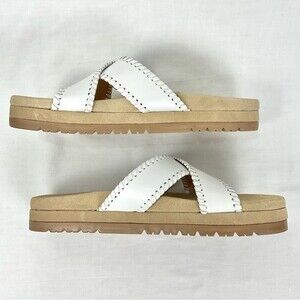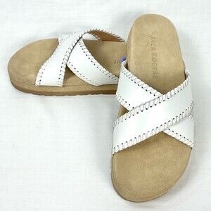 Jack Rogers White Slide Sandal Lexi 8.5 Criss-Cross Leather Padded Footbed New