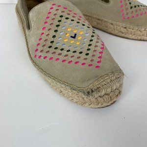 Jack Rogers Woman's Sz 10 Neural Tan Embroidered Espadrille Slide On Flats