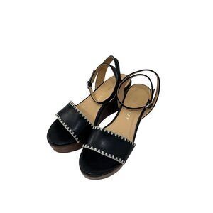 Jack Rogers Women Black Ankle Strap Platform Wedge Sandals SZ 8.5 Flagler Stitch