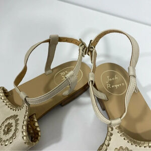 Jack Rogers Women Floral Sandals Leather Beige Ivory color Summer Casual Beach Boho