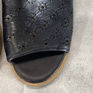 Jack Rogers Women's Black Leather Ronnie Perforated Peep-Toe Sandals SZ 9