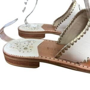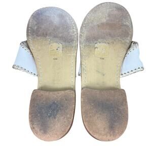 These Jack Rogers Women's Embroidered I Do Wedding Beach Reception Honeymoon Sandals in size 10 are perfect for a variety of occasions, including travel, parties, and casual outings. The slip-on style with a flat block heel and leather lining ensures comfort and durability. The white floral embroidered accents add a touch of elegance to these stylish flip flop sandals, making them ideal for summer, fall, and spring seasons. Perfect for on-the-go activities, these rubber outsole sandals are a must-have for any woman's shoe collection.