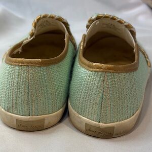 Mint Green & Gold Woven Slip On Flat Sneakers, women’s size 7.5M