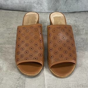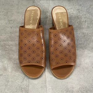 Jack Rogers Women's Mocha Leather Ronnie Perforated Peep-Toe Sandals SZ 7