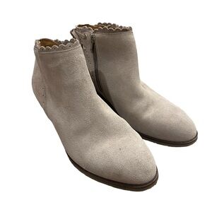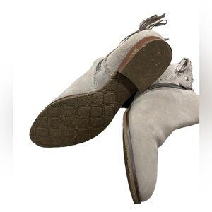 Jack Rogers Women’s Suede Ankle Boots Taupe side Zip Back Bow Bootie Size 8.5
