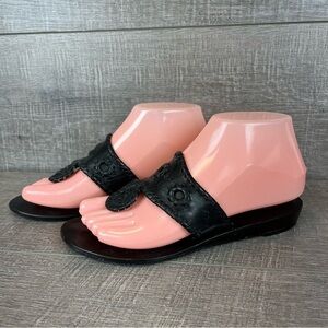 Jack Rogers sz 6 black leather whipstitch wedge flip flop sandals