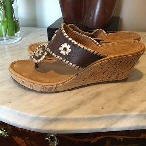 Jack Rogers wedge sandals. 3" cork wedge. Brown and gold. Worn twice, excellent condition ! Size 7.