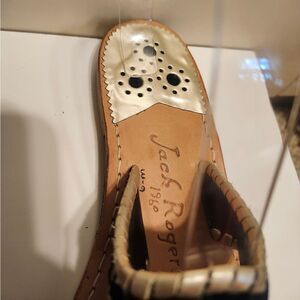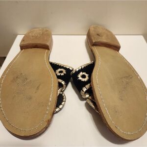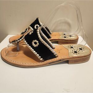 Jack Rogers Navajo Black Velvet w/Wht Leather Whipstich Thong Sandals Sz.6 $138