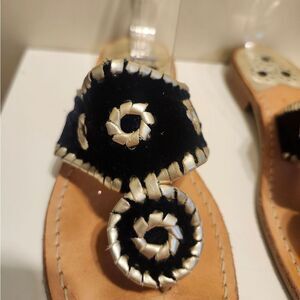 Jack Rogers Navajo Black Velvet w/Wht Leather Whipstich Thong Sandals