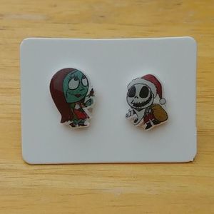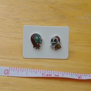 Nightmare Before Christmas Jack and Sally tiny plastic stud Christmas earrings