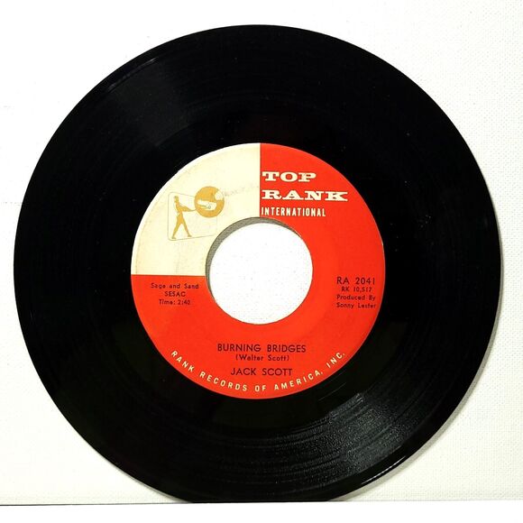 Jack Scott 45 Burning Bridges / Oh, Little One on Top Rank Intl. EX Country