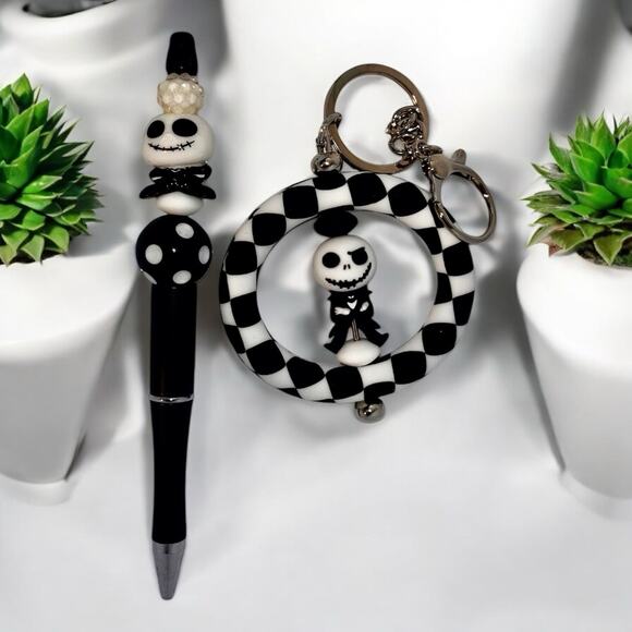 Jack Skellington Handmade Beaded Ballpoint Pen & Matching Keychain