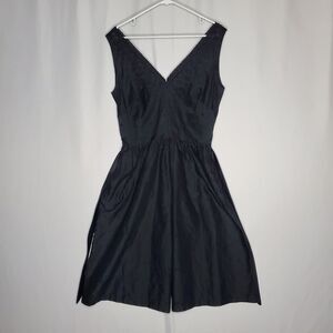Jack Slote Crop Jumpsuit Large Black Embroidered Eyelet Sleeveless V-Neck Tie Belt Old Money 60s 70s Vtg Derby