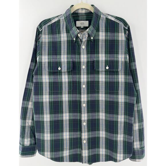 Jack Spade Mens Navy Green Plaid Shirt Button Down Cotton L