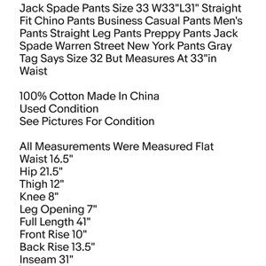 Jack Spade Pants Size 33 W33"L31" Straight Fit Chino Pants Business Casual Pants Men's Pants Straight Leg Pants Preppy Pants Jack Spade Warren Street New York Pants Gray