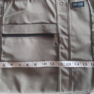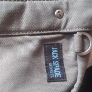 Jack Spade Slim Messenger/Briefcase Bag. Jack Spade (the men's division of Kate Spade). The interior has a large snap-close compartment -- laptop sleeve, 2 large pockets, and 2 smaller pockets. 16" wide, 13" height, 3.5" bottom width. Color Olive Green. Condition: Like new