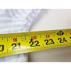 This Jack Spade men's button-down shirt in size medium features a classic blue and white striped pattern, long sleeves, and a collared neckline with a button-down style. Made from cotton, it is perfect for various occasions including travel, weddings, parties, casual outings, formal events, workwear, and business meetings. The regular fit and classic preppy theme make it a versatile and stylish addition to any wardrobe, while the addition of pockets adds functionality to the design. Machine washable for easy care, this shirt is a timeless and practical choice for the modern man.