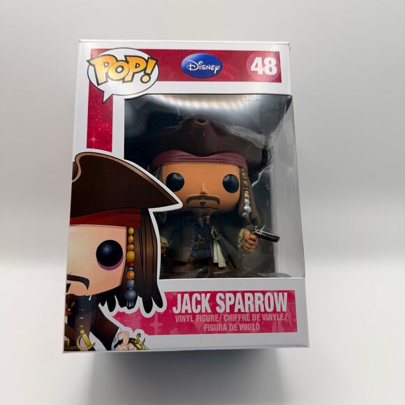 Funko Pop Disney Jack Sparrow #48 from Pirates of the Caribbean. A classic early Disney release featuring Captain Jack in his signature pirate look.