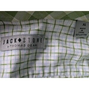 Jack Stone by Thomas Dean Dress Shirt Men's Size XL Green Plaid Patterned Cuff