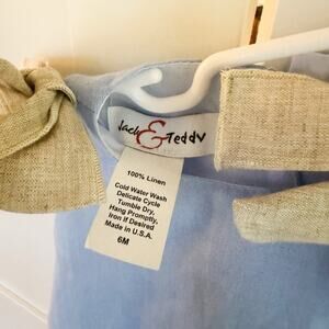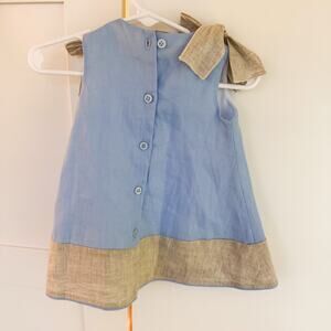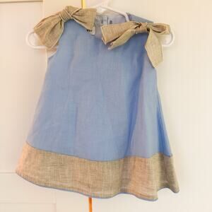 Jack & Teddy 100% Linen Dress 6M Girls Baby Boutique Dress- Bow Sleeves- Blue