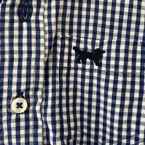 Blue gingham plaid button down shirt for little boys. Toddler size 2T with good length. Designer Jack Thomas