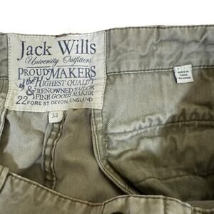 Embrace the great outdoors with these Jack Willis Men's Cargo Shorts in a stylish tan color. Perfect for hiking, traveling, or even casual wear, these shorts come in a size 32 with an 11-inch inseam and mid-rise waist. The flat front design and button fly add to the overall aesthetic, while the cargo pockets provide ample storage for all your adventure essentials.