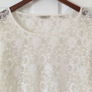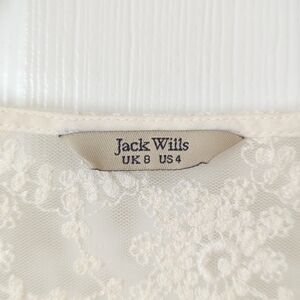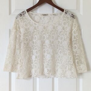 Jack Wills Boho Chic Sheer Floral Lace Cropped Half Sleeve Round Neck Top Cream