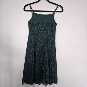 Jack Wills Hunter Green Lace Pleated Sleeveless Dress