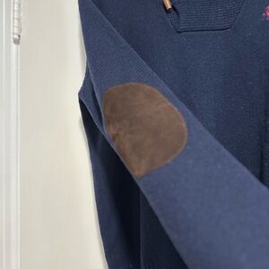 Jack Wills Men’s Wool XL Navy Blue Shawl Collar Pullover Sweater W/ Elbow Patch.