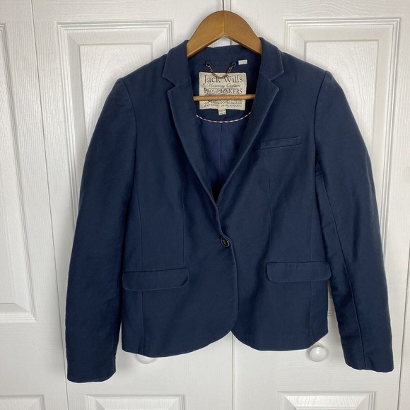 Jack Wills Size 6 Blazer Jacket Navy Blue Cotton Tailor Button Single breasted
