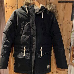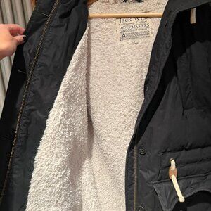 Sheep skin warm parka jacket by Jack Wills with fur hood.