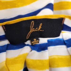 Bright, playful, and effortlessly chic — this Jack striped mini skirt features bold blue, yellow, and white stripes with soft pleats for a flattering A-line silhouette. Perfect for sunny days, brunch dates, or beach getaways. Pairs beautifully with a white blouse or denim jacket for a fun, preppy look.