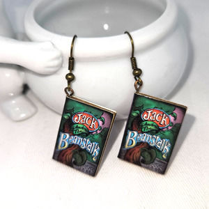 Jack and the Beanstalk Fairytale Book Earrings w/ Bronze Hooks Hypoallergenic