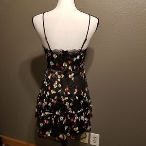 Jack by BB Dakota Womens Size 2 Dress Mini Above Knee Embroidered Floral Mesh Lace Trim Black Lined Whimsigoth Dark Romantic Dark Floral