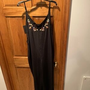 Jack by BB Dakota Agnesi Crepe Embroidered Jumpsuit in black. Multicolor floral embroidery on bodice, button closure on side. Side pockets. Women's size medium. Gently used with no flaws.