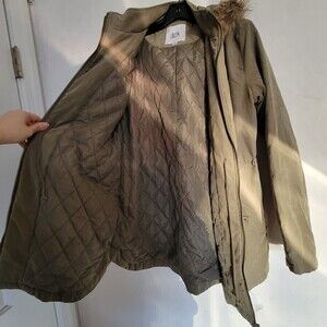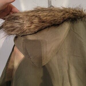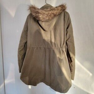 Jack by BB Dakota Army Green Zipper Front Quilted Inner Fur Hood Jacket Medium
