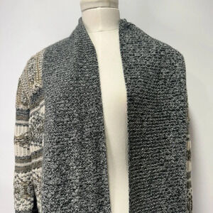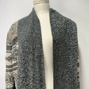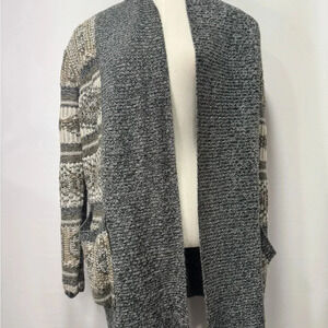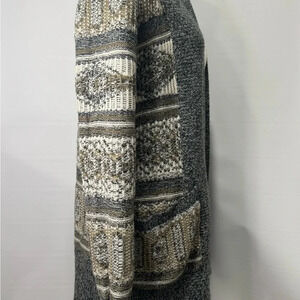 Jack by BB Dakota Avora Pattern Boho Cardigan Sweater. Gray, tan, white. Size Medium