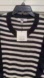 Chic sweater with black and white stripes. Features stylish ruffle accents.