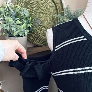 Jack by BB Dakota Black/White Striped Ruffle Cold Shoulder Sweater