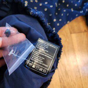 Shirt is new with tags! Not a stretchy material. Gold dots have some shimmer. Comes with extra button.