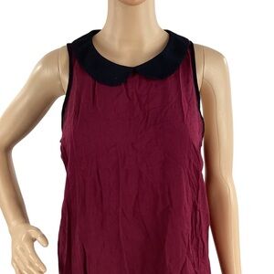 Tags: sleeveless blouse, Peter Pan collar top, Jack by BB Dakota, burgundy blouse, contrast collar top, vintage-inspired top, women's business casual, rayon top, size medium sleeveless shirt, BB Dakota sleeveless