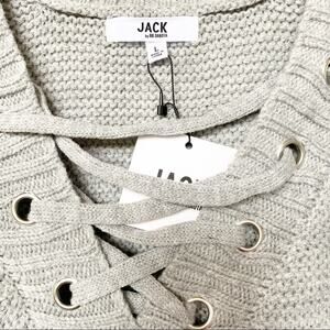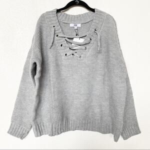 Jack by BB Dakota Hey Ms. Carter rib stitch lace-front sweater. Warm and cozy, this sweater will be your go-to during the cooler months! Rib knit with lace up detail on the front.