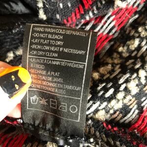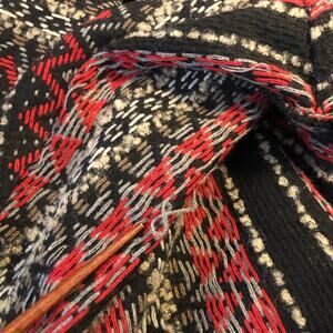 π Additional Details: Belted Tie Waist, Knit Tribal, Print, Collared, 95% Polyester/5% Wool, Multicolor - Black, Red, White