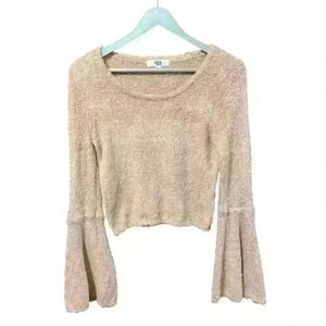 Jack by BB Dakota Pink Cropped Fuzzy Bell Sleeve Shirt – Size Large – Great Condition