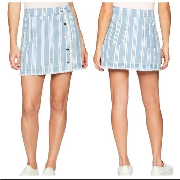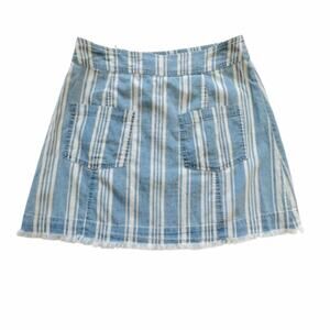 Jack by BB Dakota Skirt Ivanna Blue Striped Raw Hem Chambray Mini Size 2 NEW
