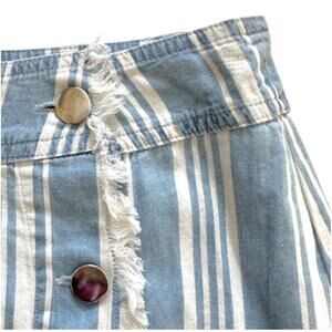 Jack by BB Dakota Blue White Striped Raw Hem Side Rivet Button Closure Lightweight Mini Skirt