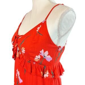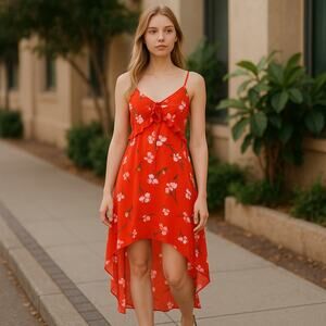 Jack by BB Dakota Sundress Size 4 Red Orange White Floral High-Low Rayon Maxi