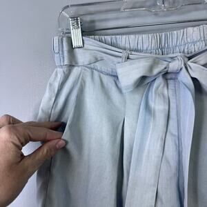 Jack by BB Dakota Tie Front Elastic Waist Pleated Chambray Pull On Shorts Women's Size S. Attached self tie elastic waist light wash chambray pull on shorts. Lightweight and flowy. Pockets at sides and on rear. Pleated front.