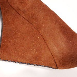 Jack rogers Brown Black Suede Leather WhipStitch Peep Toe Wedge Sandals Sz 6